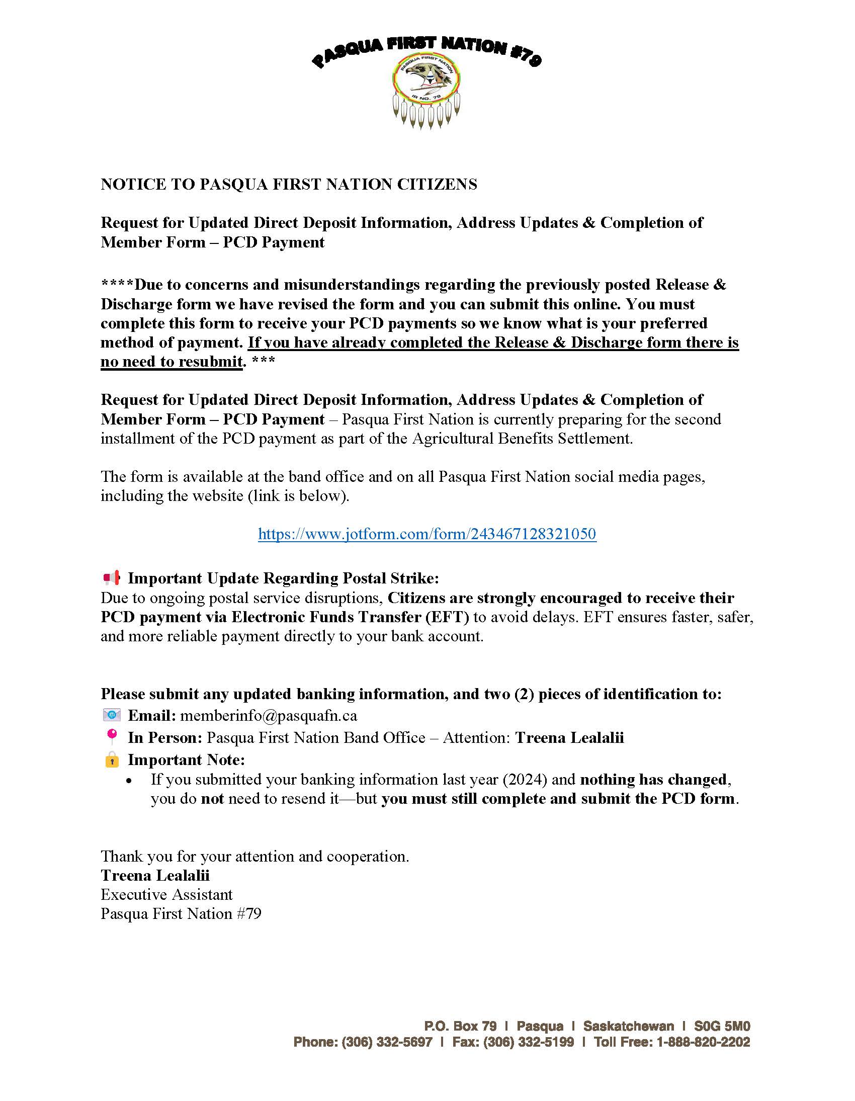 Attention: Pasqua First Nation Citizens,