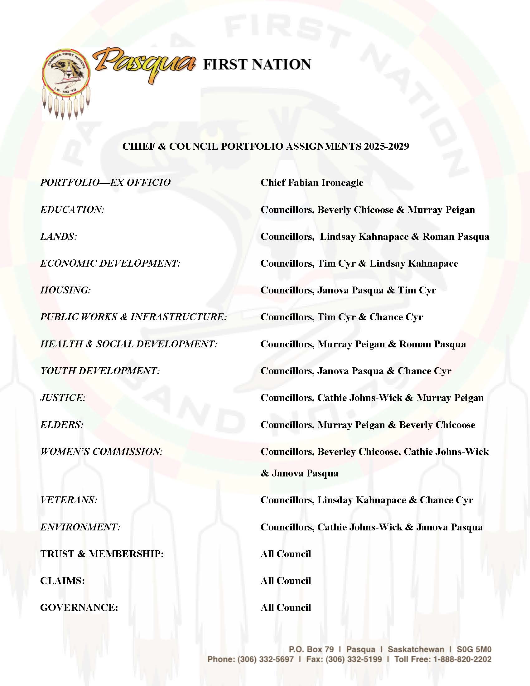 Chief and Council Portfolio Assignments 2025-2029